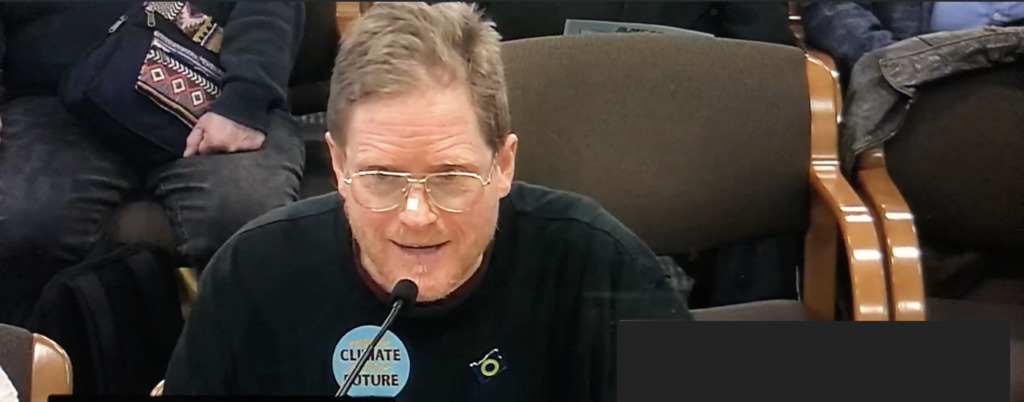 “Chair Golden and members of the Committee, my name is Brian Ettling. I am speaking on behalf of the Climate Reality Portland Chapter to urge you to support the Climate Resilience Super Fund Bill, SB 1541. Due to the large number of individuals who yet want to speak in favor of this bill, I will defer the rest of my allotted time to them. Please refer to our written comments. Please support SB 1541. Thank you so much for your time.”