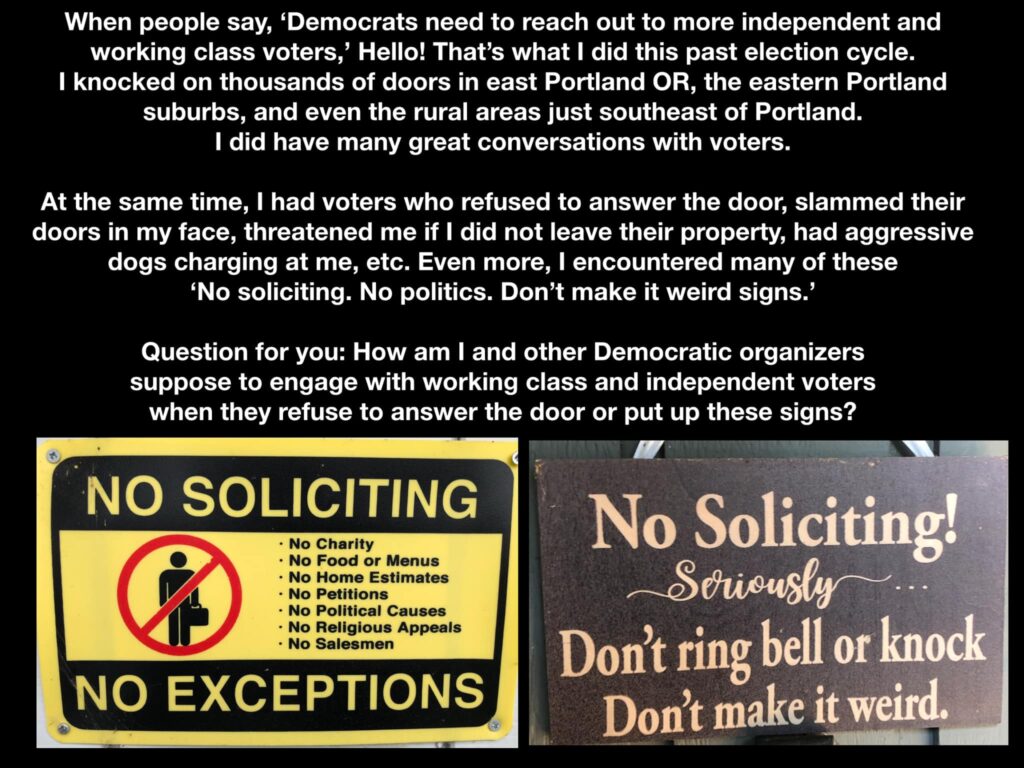I followed up those writings with a related blog I posted in April 2024, For Climate Action, be kind to people knocking at your door. The blog was about my dedication and frustration to knocking on doors in in the Portland OR metro area as a U.S. Census Enumerator in 2020 and as a paid political canvasser/field organizer for the 2022 midterm elections. I wanted to uphold our democracy and to urge my fellow community members to vote for support Democratic candidates who would pass strong climate bills and uphold our democracy.